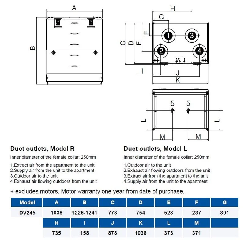 This unit has a high-quality PVC counterflow heat exchanger with a 90% thermal efficiency protected with high-capacity filters on each side